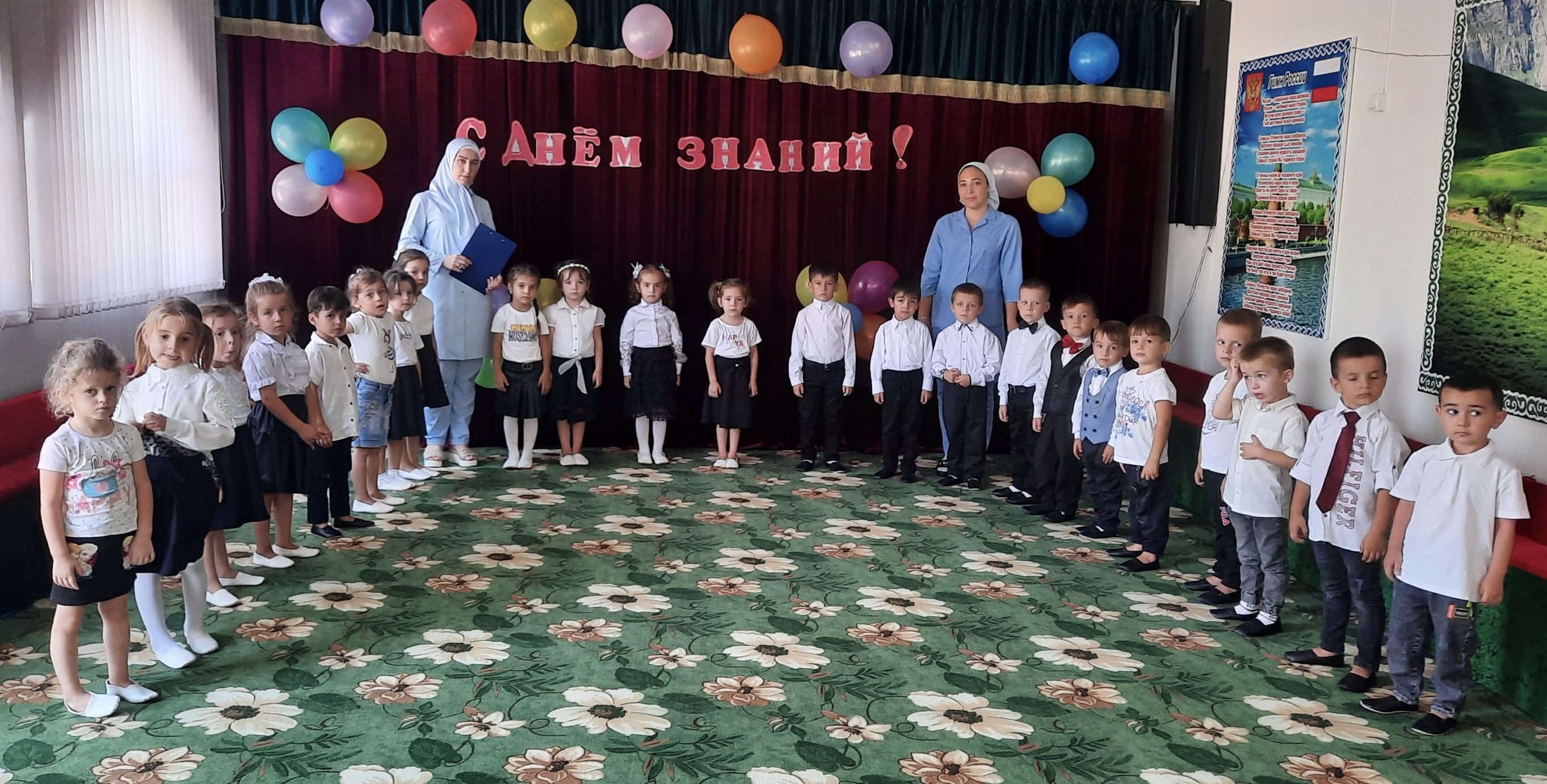 В средней группе "Чебурашка" воспитатели Нагаева Ж.В. и Гадаева З.Э. вместе с музыкальным руководителем Керимовой П.М. провели мероприятие посвященное к Дню знаний.